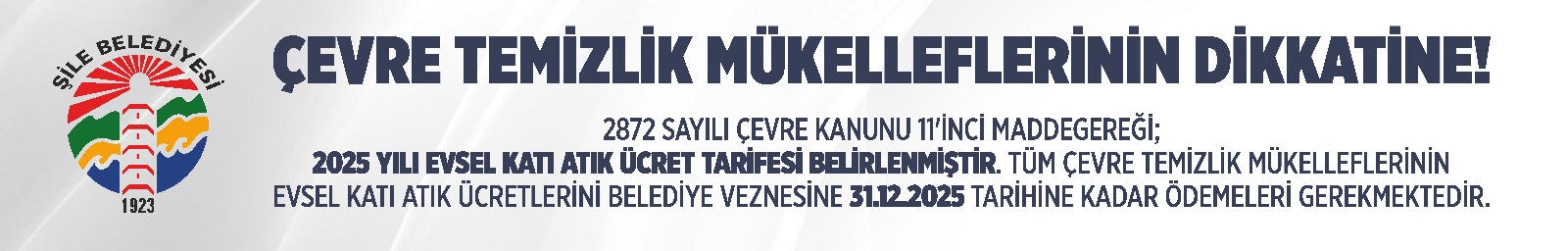 2872 sayılı Çevre Kanunu’nun 11. maddesi gereği 2025 yılı evsel katı atık ücret tarifesi belirlenmiştir. Evsel katı atık ücretlerinin 31.12.2025 tarihine kadar belediyemiz veznesine ödenmesi gerekmektedir.