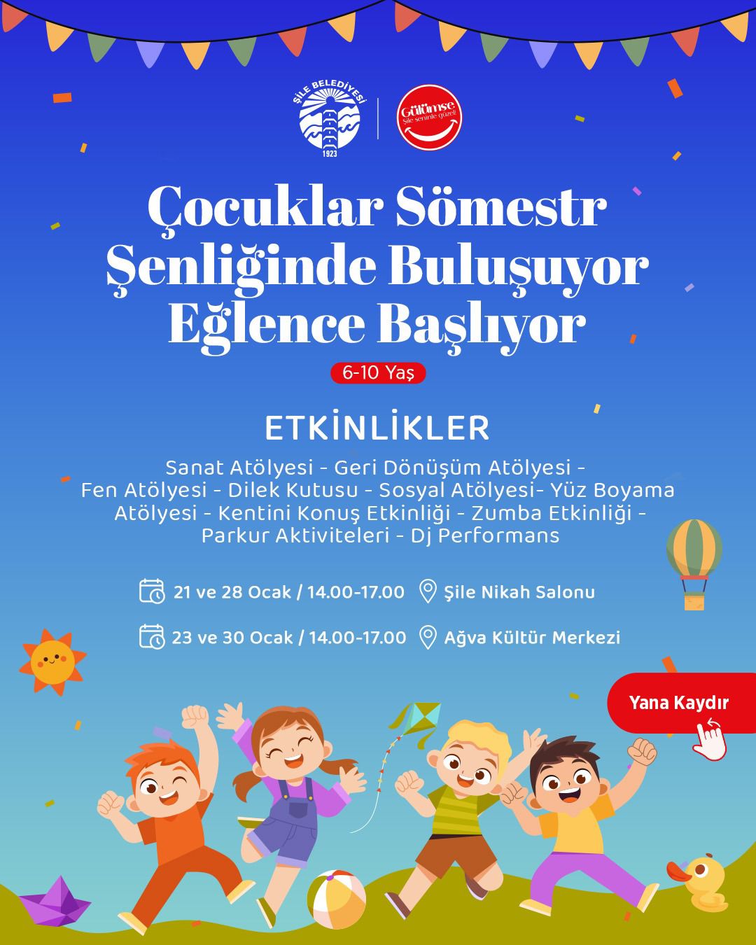 Şile Belediyesi olarak yarıyıl tatilinde çocuklarımız için dopdolu bir Sömestr Şenliği hazırladık.