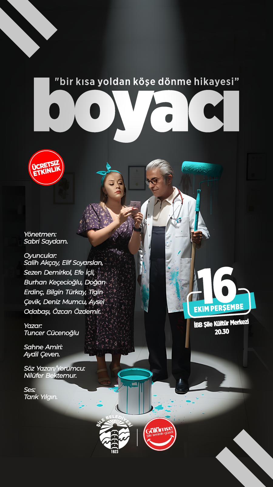 Şile Belediyesi Tiyatro Atölyesi, ''Boyacı'' adlı ilk oyunuyla 16 Ekim Perşembe Günü saat 20.30' da İBB Şile Kültür Merkezi'nde ücretsiz olarak seyirciyle buluşuyor.