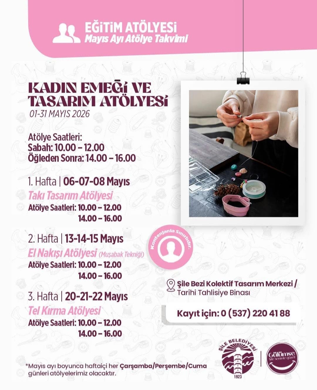 Geleneksel Şile bezini kadın emeği ve tasarımla buluşturduğumuz atölyemizde, Mayıs ayı programı kapsamında kültürel mirasımızı yaşatmak ve üretimi desteklemek için bir araya geliyoruz.