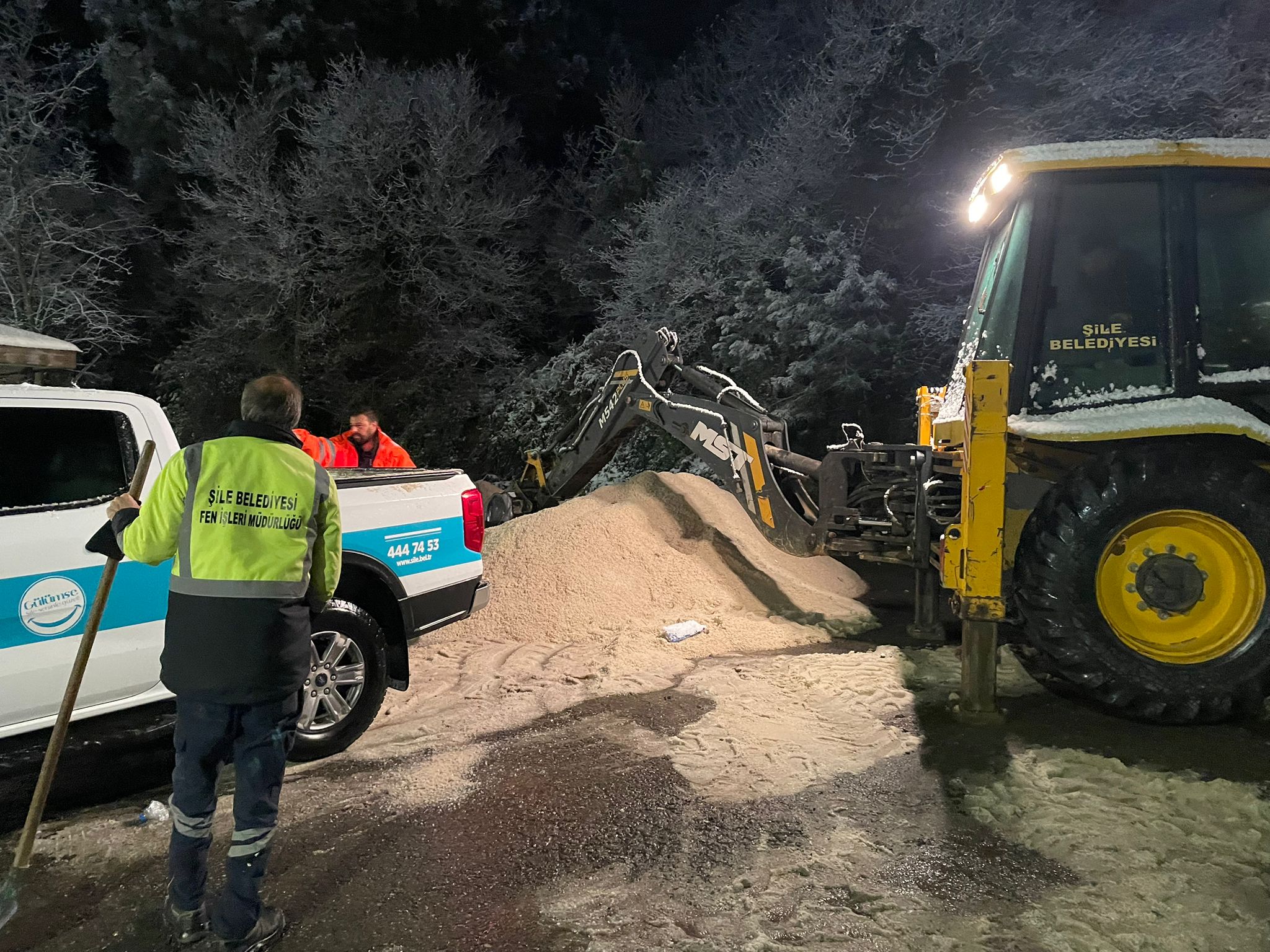 Gece saatlerinde kent genelinde kar ve buzlanma tehlikesine karşı harekete geçen Şile Belediyesi ekipleri, mahallelerdeki ulaşımı sağlamak için tuzlama ve yol açma çalışmalarına hız kesmeden devam etti. Ekipler, ilçenin en uzak noktalarına kadar ulaşıp, vatandaşların güvenli seyahatlerini sağlamak amacıyla 7/24 görev başındaydı.