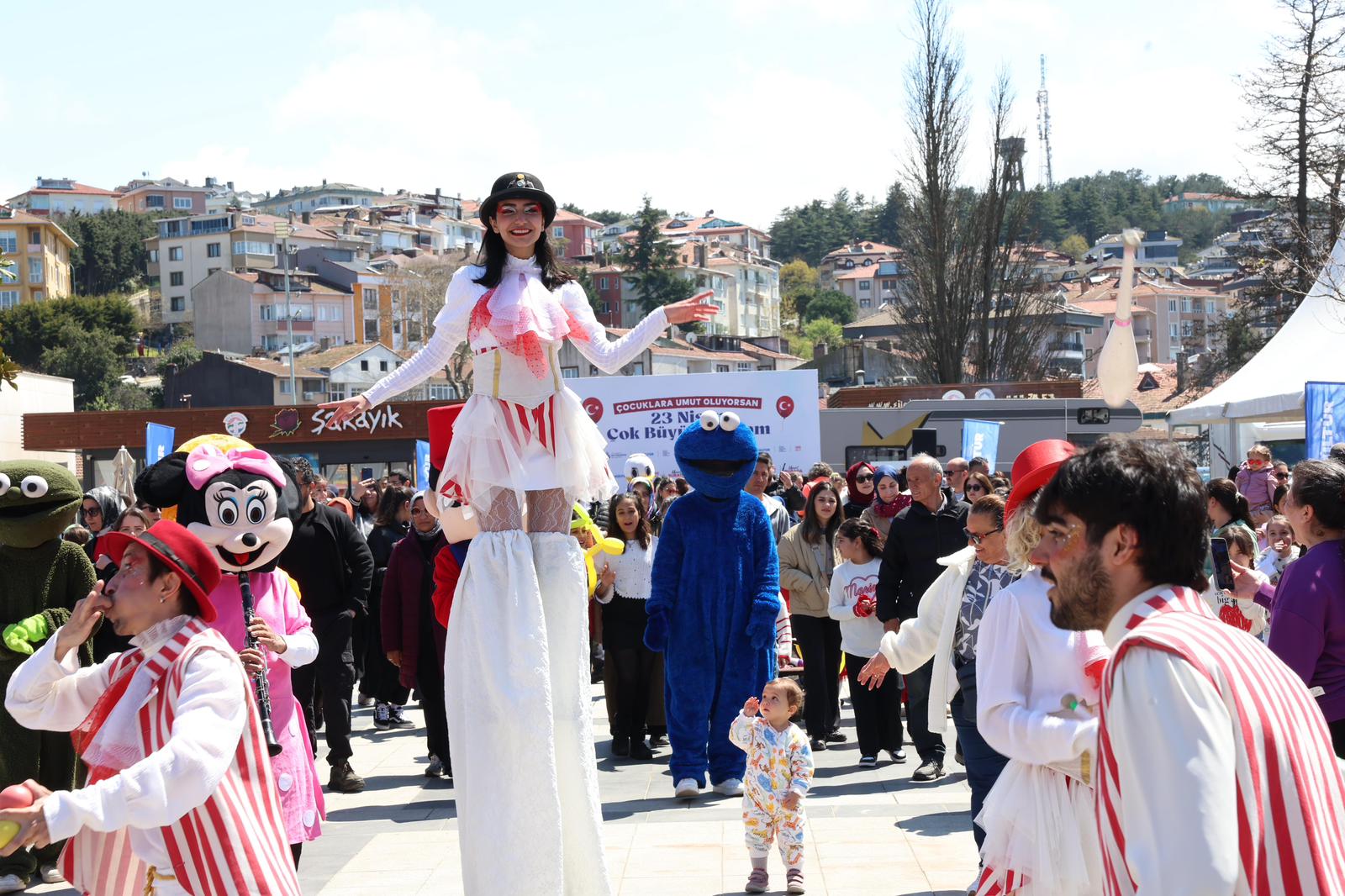 Şile Belediyesi’nin düzenlediği 23 Nisan Ulusal Egemenlik ve Çocuk Bayramı etkinlikleri, ilçe genelinde büyük bir coşkuyla kutlandı. 23 Nisan Perşembe günü sabah saatlerinde başlayan programlar kapsamında, Belediye Meydanı ve Üsküdar Caddesi’nde çocuklar için atölyelerden spor yarışlarına, şişme oyuncak alanlarından gösterilere kadar birçok aktivite gerçekleştirildi. Günün ilk töreni saat 09.30’da Şile Belediye Meydanı’nda düzenlenen çelenk sunma töreni oldu. Ardından saat 10.30’da İBB Şile Kültür Merkezi’nde İlçe Milli Eğitim Müdürlüğü tarafından hazırlanan kutlama programı yapıldı. Kaymakam Mustafa Çit, Belediye Başkan Vekili Sacit Terzi ve ilçe protokolünün katıldığı törenlerde, çocukların sahnelediği performanslar büyük beğeni topladı.