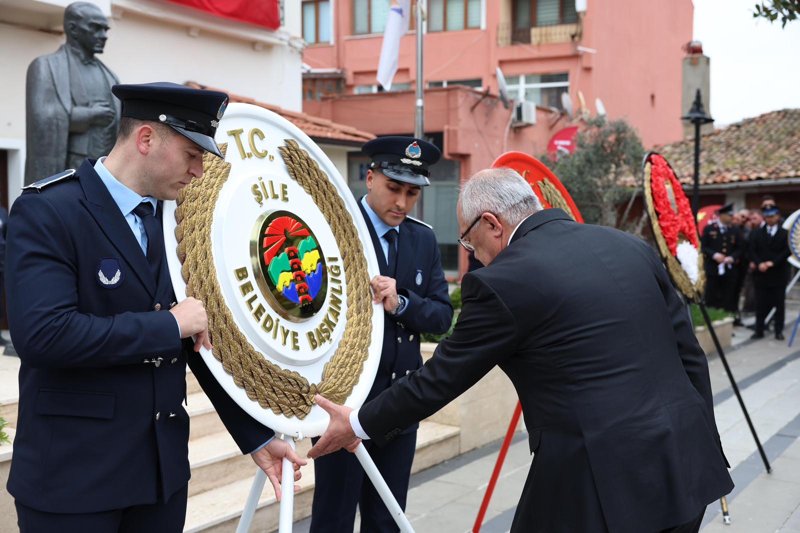 Şile Belediyesi, Türk tarihinin altın sayfası olan 18 Mart Çanakkale Deniz Zaferi ve Şehitleri Anma Günü’nü, ilçenin dört bir yanına yayılan anlamlı etkinliklerle taçlandırdı. Günün ilk ışıklarıyla Belediye Meydanı’ndaki Atatürk büstüne çelenk sunumuyla başlayan anma törenlerine; Şile Kaymakamı Mustafa Çit, Garnizon Komutanı Hava Savunma Albay Bülent Güvenç, Belediye Başkan Vekili Sacit Terzi ve ilçe protokolü katıldı. Saygı duruşu ve İstiklal Marşı’nın ardından Albay Güvenç, günün anlam ve önemine dair yaptığı konuşmada vatan savunmasının kutsallığına vurgu yaptı.