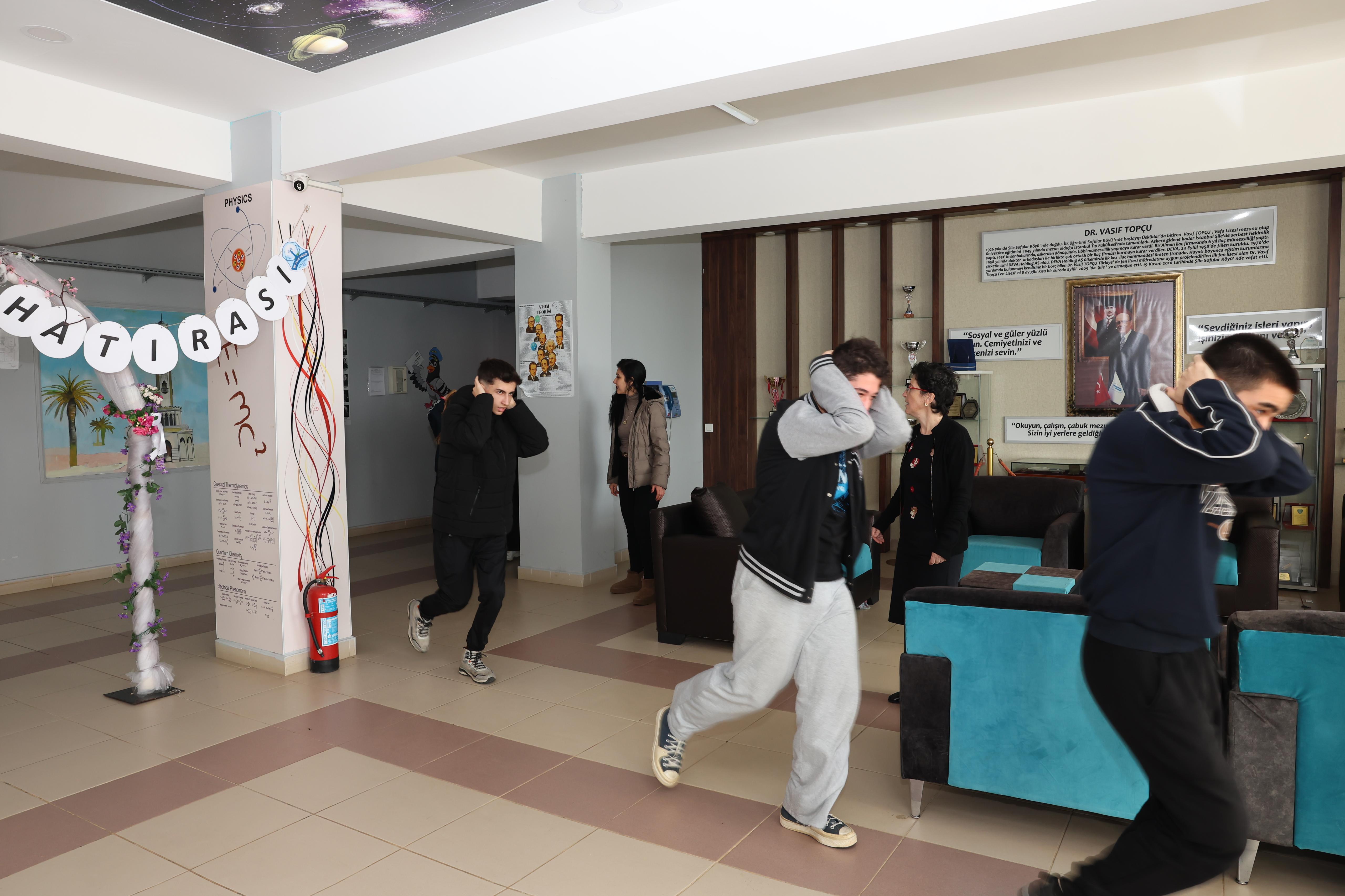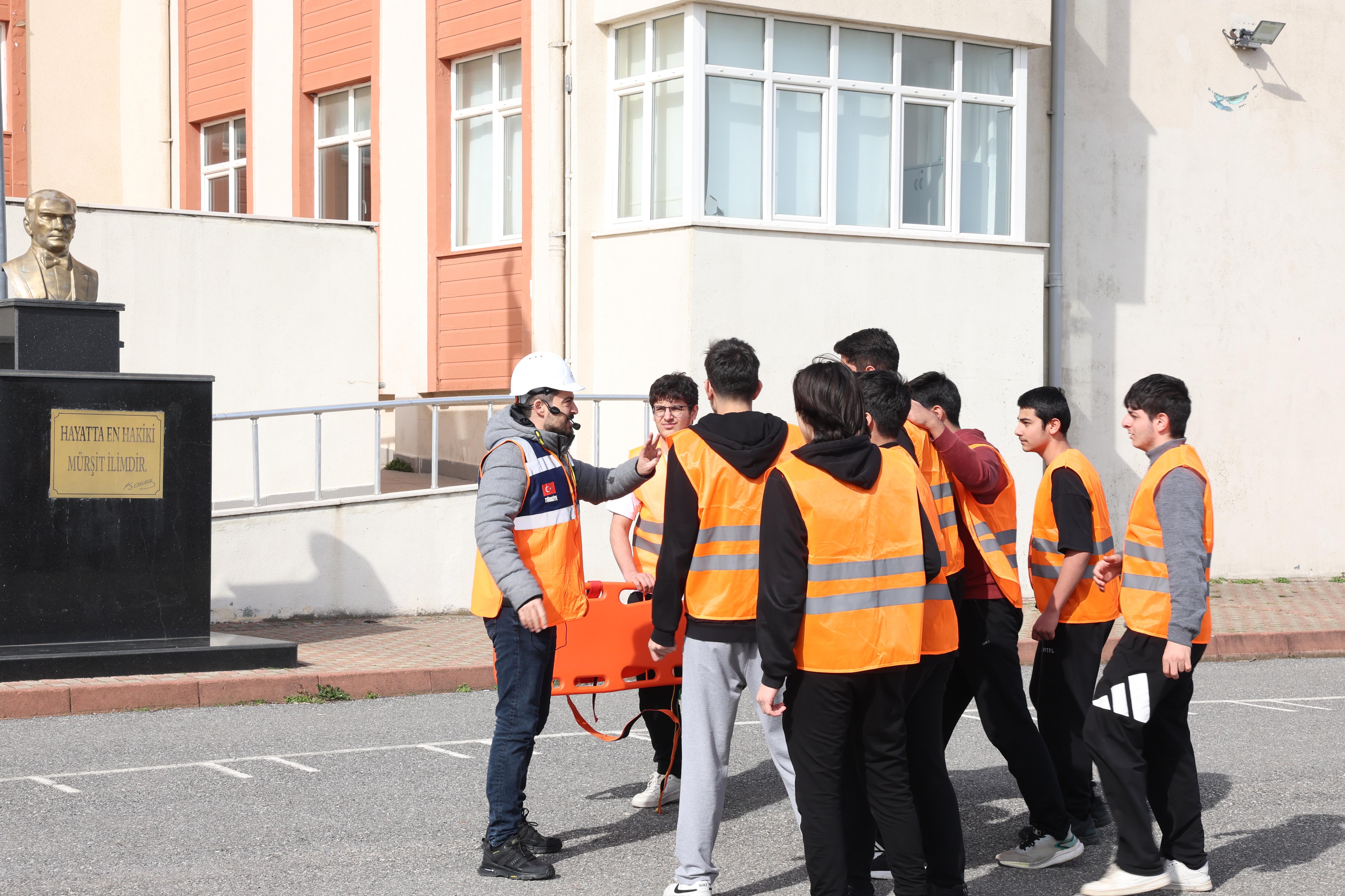 Sirenlerin çalmasıyla birlikte öğrenciler, sınıflarında ve okul koridorlarında "Çök-Kapan-Tutun" pozisyonu alarak sarsıntının geçmesini bekledi. Ardından başlayan tahliye sürecinde, turuncu yelekli görevli öğrencilerin disiplinli yönlendirmeleri dikkat çekti. Okul bahçesinde güvenli alanların oluşturulması ile devam eden süreçte; senaryo gereği yaralanan afetzedelere Ulusal Medikal Kurtarma Ekibi Birimi (UMKE), MEB Arama ve Kurtarma Birimi (AKUB) ve Şile İlçe Sağlık Müdürlüğü ekiplerince profesyonelce müdahale edildi.