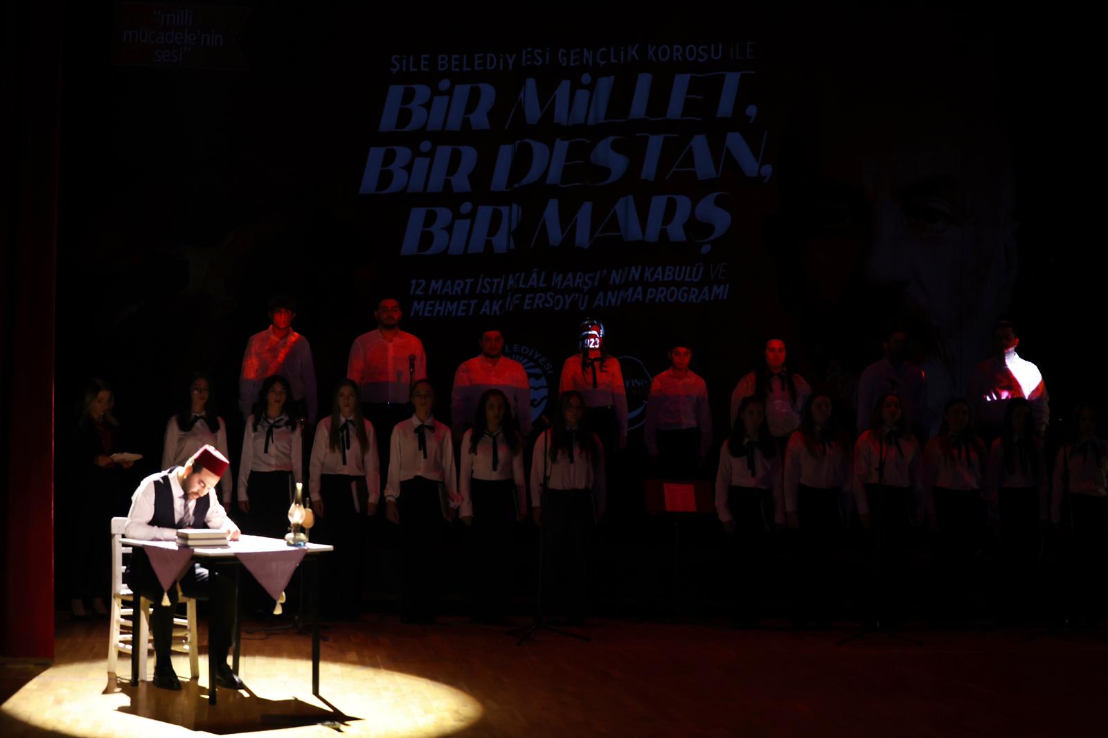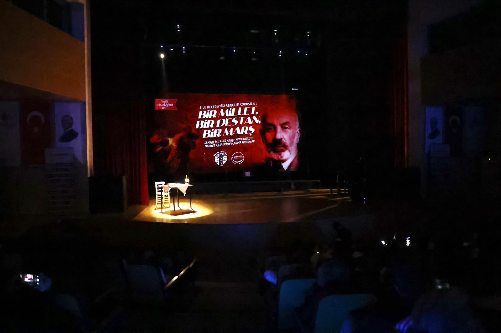 Türk Milletinin bağımsızlık sembolü olan İstiklâl Marşı’nın 12 Mart 1921’de Türkiye Büyük Millet Meclisi (TBMM) tarafından kabul edilişinin yıl dönümü, Şile’de anlamlı bir programla kutlandı. Şile Kaymakamı Mustafa Çit; Şile Belediye Başkan Vekili Sacit Terzi ve Belediye Başkan Yardımcısı Berna Avcı’nın katılım gösterdiği gecede, vatan şairi Mehmet Akif Ersoy ve vatan uğruna canlarını feda eden tüm kahramanlar rahmet, minnet ve saygıyla anıldı.